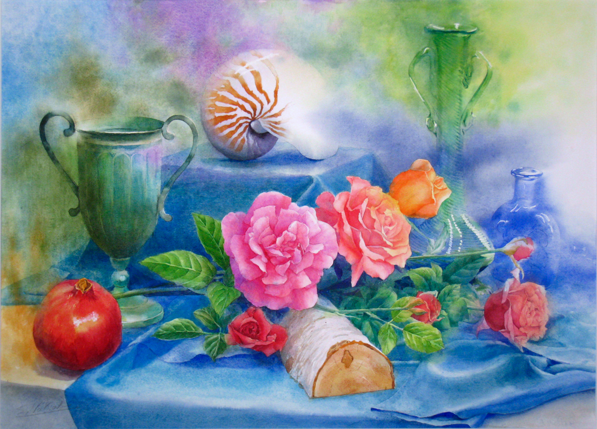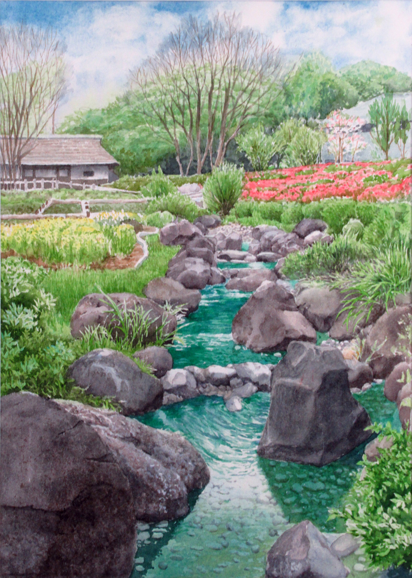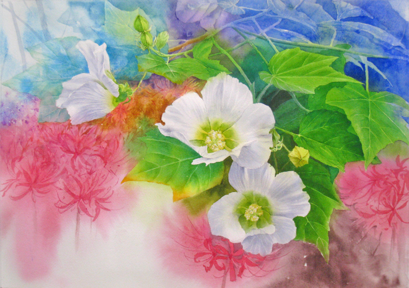 岩絵具で描いた抽象画や水彩画などの絵画作品を紹介するサイトです。