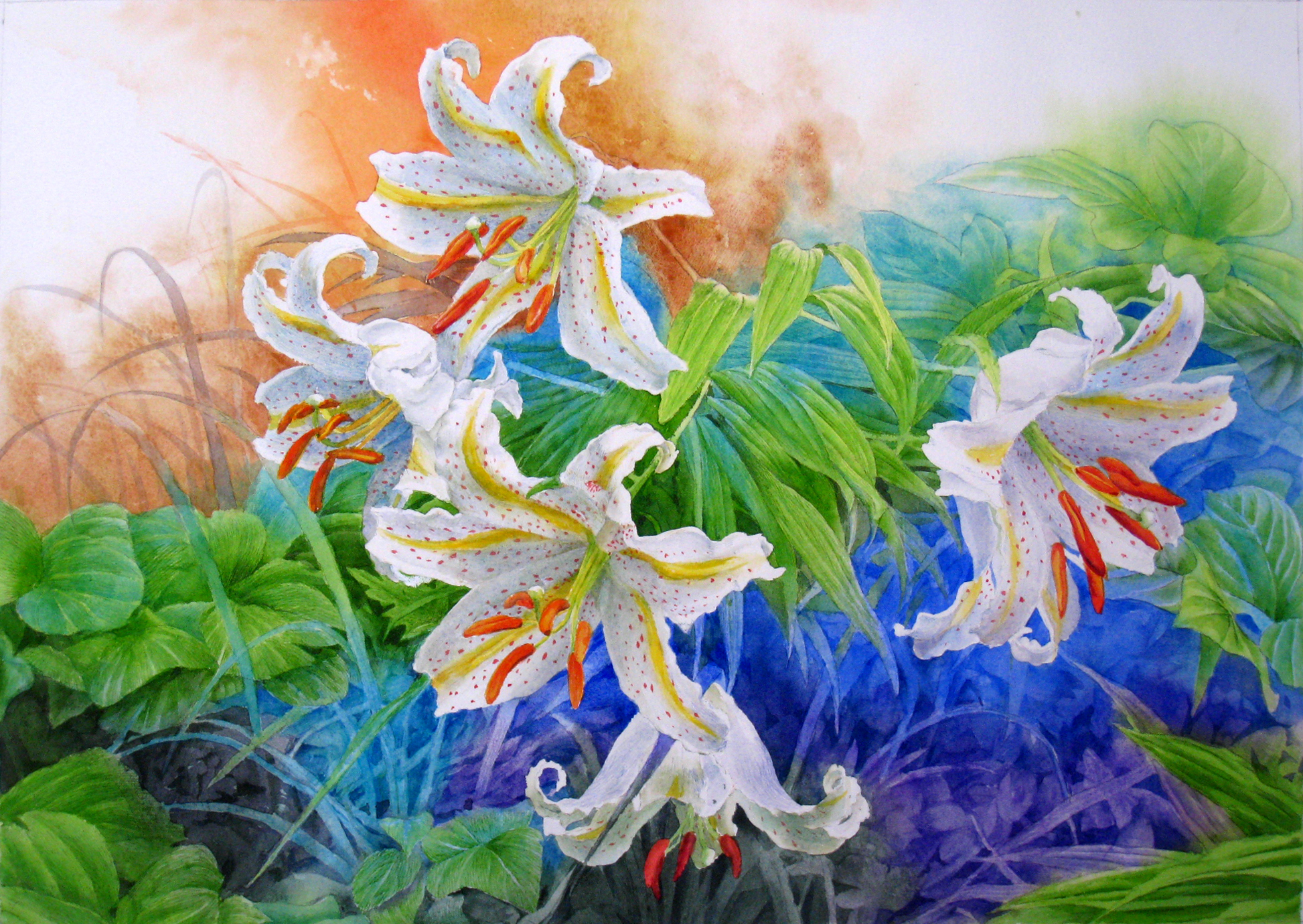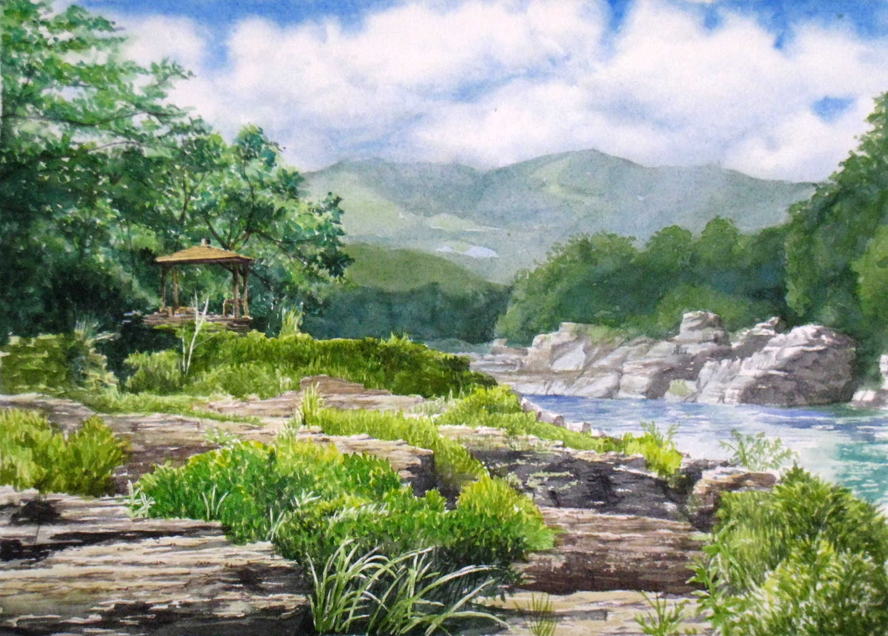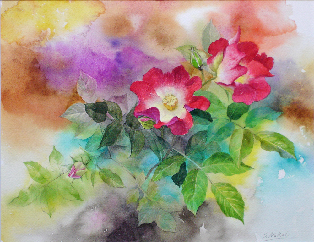 岩絵具で描いた抽象画や水彩画などの絵画作品を紹介するサイトです。
